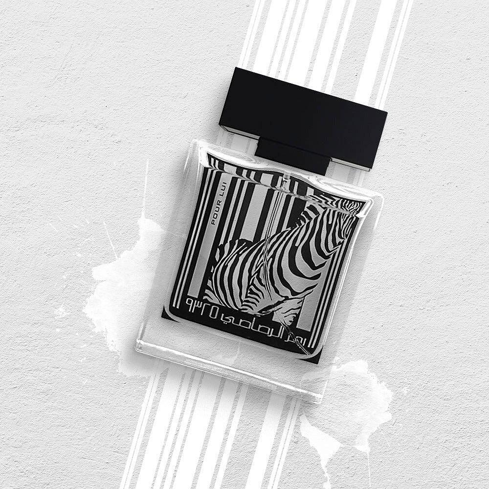 Rumz Al Rasasi este o serie în trei ediții inspirată de modă și de dorința unei identități unice. Inspirat de grația și fluiditatea zebrei, Rumz Al Rasasi 9325 Pour Lui este un parfum care celebrează puterea și grația formei masculine. Prima ediție a seriei Rumz Al Rasasi, care celebrează exprimarea de sine prin codificarea personalității unice, 9325 se bucură de libertatea de a fi unic prin alegere, nu prin dictat. Parfumul a devenit deja un imn cult pentru tinerii care vor să iasă în evidență, cu note florale lemnoase amestecate cu piele și mosc, conferind parfumului 9325 o semnătură aromatică unică. Parfumul se deschide cu notele dulci, suculente și luxuriante de pere cu piper negru, adăugând un accent luminos trecător. Profilul luminos și vesel al parfumului, accentuat în continuare de lăcrămioare și iasomie, cu o nuanță verde răcoritoare de frezie, se curbează în note animalice, senzuale, lemnoase, pieloase, care sunt întunecate, bogate și misterioase.