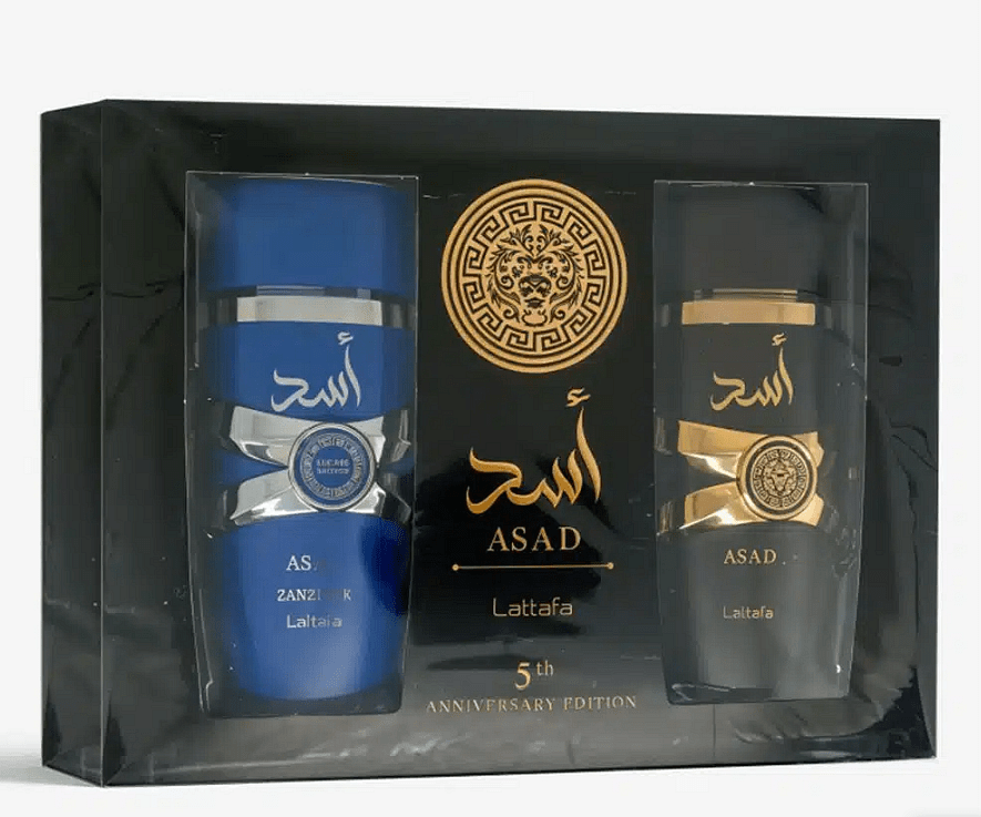 Setul aniversar Asad de 5 ani este un set cadou de parfumuri luxoase, creat de Lattafa, o renumită casă de parfumuri din Orientul Mijlociu. Acest set include două ape de parfum rafinate: Asad și Asad Zanzibar, fiecare în sticle de 90 ml.